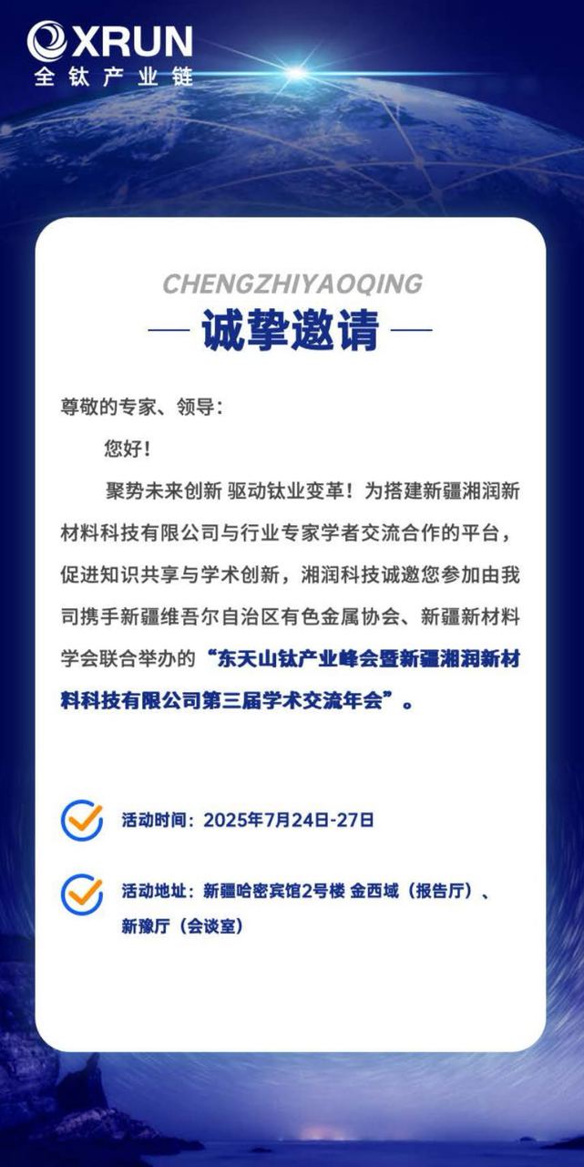 中國·哈密“東天山鈦產(chǎn)業(yè)峰會暨 ” 新疆湘潤新材料科技有限公司 第三屆學術(shù)交流年會—誠邀您的蒞臨